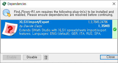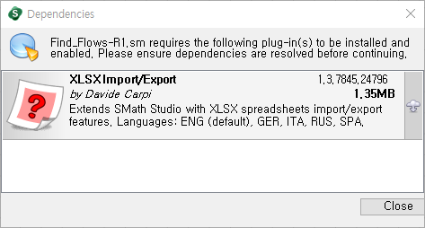 엑셀데이터를 SMath로 불러오는 방법 1. XLSXImport/Export plugin을 설치한다. 2. 불러올 엑셀파일과 SM file은 동일한 폴더에 있어야 한다. 3. 사용법은 다음과 같다.